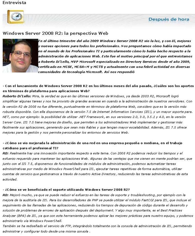 Queria aprovechar la oportunidad para publicar la entrevista que publico TechNet Latam Newsletter en su ultimo voletin.