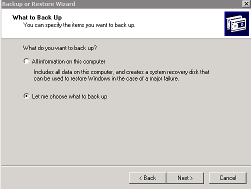 Seleccionamos Let me choose what to back up, y hacemos un clic en Next.
