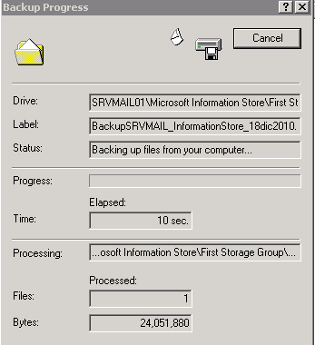 Comienza el proceso de backup, esto puede demorar un tiempo según el tamaño de nuestro Information Store.
