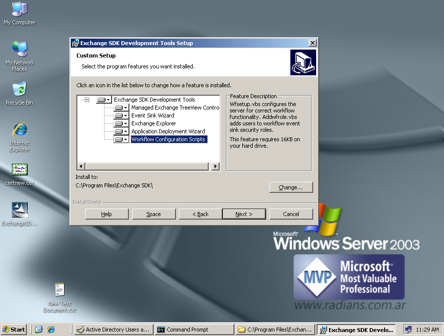 Hoy vamos a ver como podemos agregar un disclaimer en los mensajes salientes de nuestro Exchange Server 2003 por medio de un VBScript. Para poder hacer esto vamos a necesitar las herramientas SDK de Exchange (Ver sección de links para su descarga).