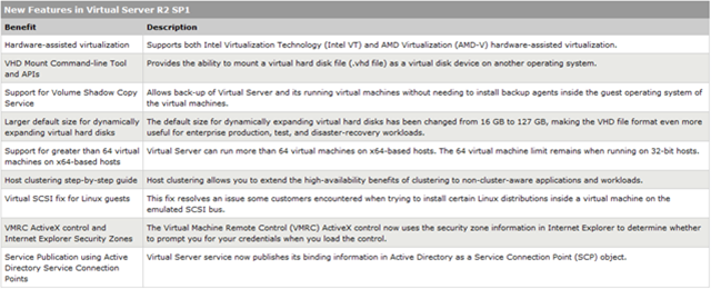 Este service pack agrega nuevas funcionalidades al Virtual Server 2005 R2, dentro de ellas estan las siguientes: