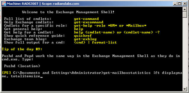Uno de los puntos difícil de darse cuenta (o por lo menos para mí) fue cómo saber el tamaño de los buzones en Exchange 2007, dato que no es visible a través de su consola. Después de buscar información y molestar a algunos colegas con consultas encontré (o me mencionaron) dos formas de hacerlo.