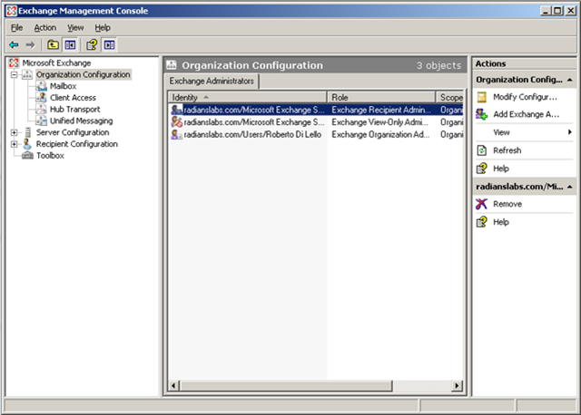 Una a través de una consola de administración de Exchange 2003, como siempre. Esto es posible ya que se puede instalar solamente la consola de administración de Exchange 2003 en un