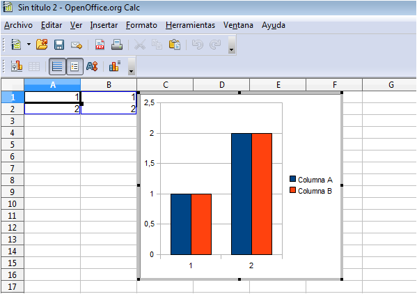 Tengo ahí mi planillita que tanto trabajo me dio con sus datos y su gráfico. Voy a hacer drag and drop de otra planilla previamente creada para abrirla con Calc.