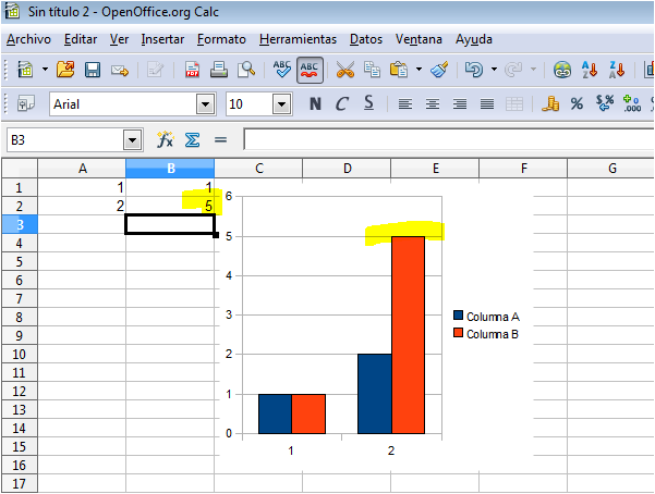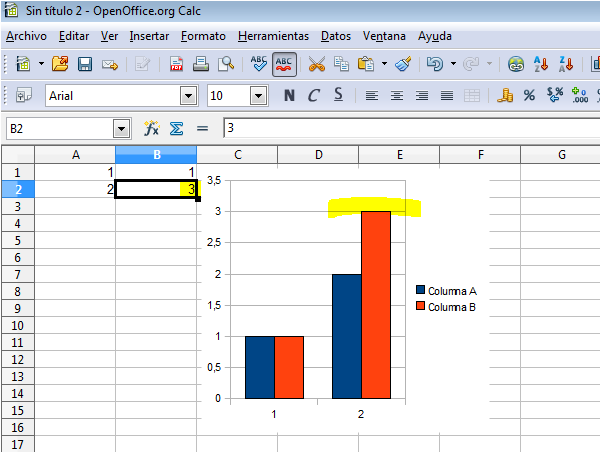 Bien, ahora… a cambiar un dato en la tabla dentro de Calc, de 3 cambio a 5,