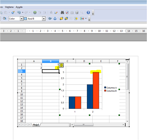 Ok, no pasa nada, una oportunidad mas, doble click al objeto pegado, bien! tenemos ahí la planilla y el gráfico, toquemos el dato desde ahí!