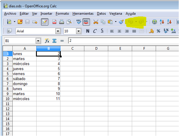 Asique voy a abrir el archivo dias.ods, arrastrándolo al Calc, arrastro…