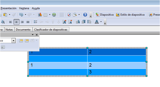 Ups! y el 4 que estaba en la tabla anidada? ahhhh… este… se fue también, no esta más! O sea que ¿se pierden datos en un copy/paste entre Write e Impress con tablas anidadas? Si! Crudo pero real.