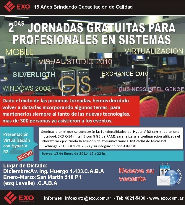 Quería invitarlos al evento que se realizara el día Jueves 13 de enero en Exo Trainning Center. Aprovechen e inscríbanse que es GRATIS. Saludos. Roberto Di Lello.