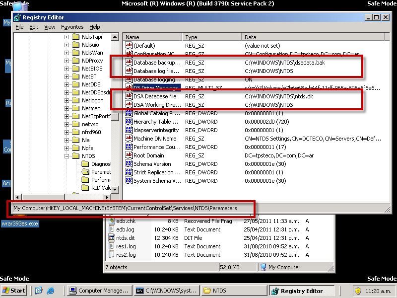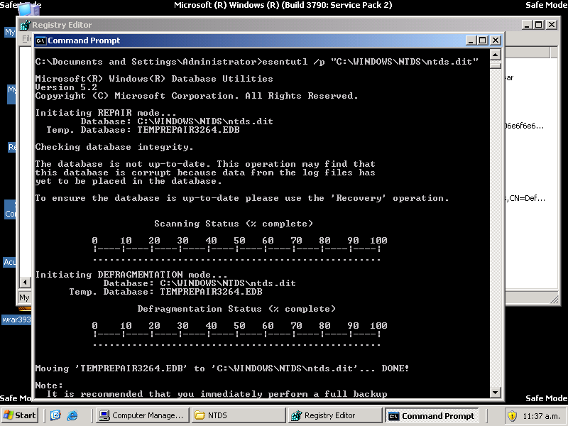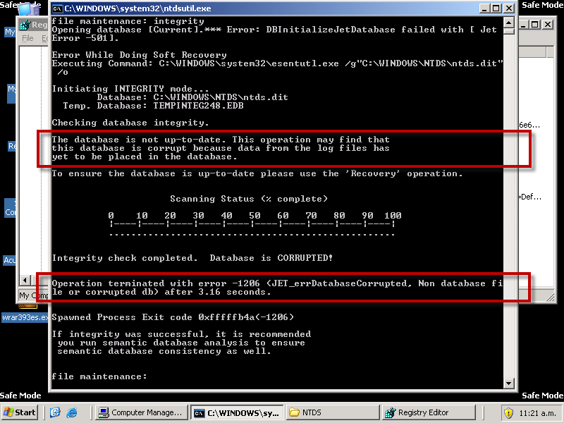 Hola, intentando reparar la base de datos NTDS.dit me da el siguiente error. Agradezco si me pueden ayudar.