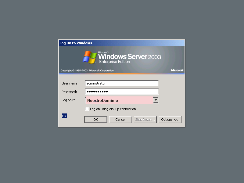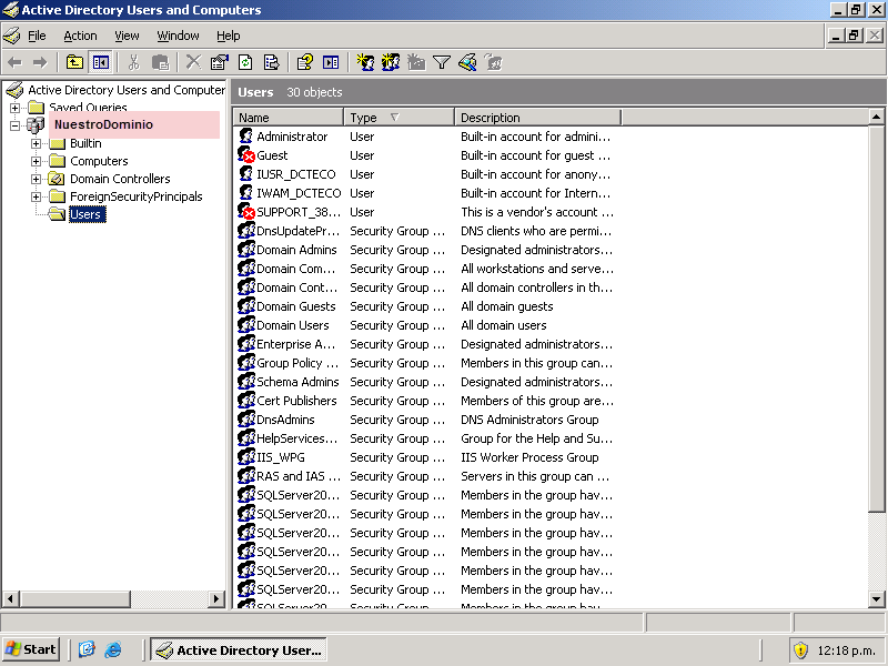 Mientras reinicia el equipo, podemos ver que no nos da mas el error y que el equipo reinicia normalmente. Nos podemos logear al equipo y si abrimos la consola de Active Directory Users and Computers y vemos todos los usuarios y el servidor inicio correctamente.