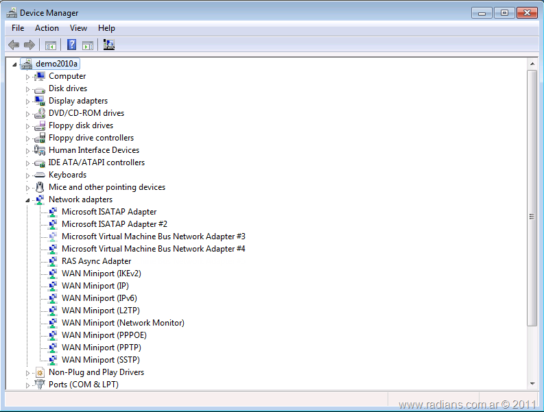 Una vez que la consola esta disponible, seleccionamos View, y luego Show hidden devices.