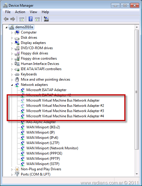 Podemos observar que no tenemos las redes 0 y 1, pero si tenemos la Microsoft Virtual Machine Bus Network Adapter #3 y Microsoft Virtual Machine Bus Network Adapter #4.