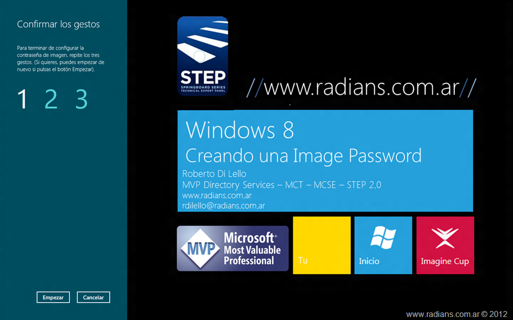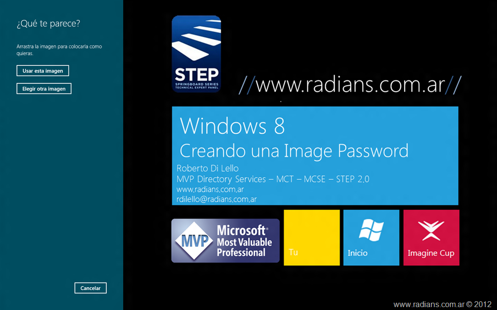 Hoy vamos a ver algo de Windows 8, sobre seguridad que es muy practico; además de tener nuestro password del equipo podemos generar un password en una imagen. Como? Si, podemos grabar ciertos movimientos o clics en un lugar puntual de una imagen y hacer que esto sea nuestro password, en lugar de escribir una palabra.