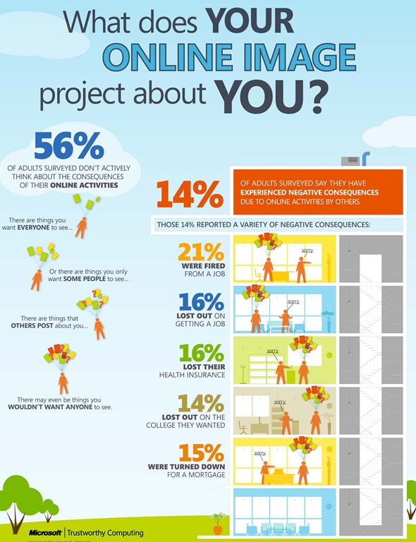 Aunque mucho depende de quién tiene acceso a los datos, cada pieza de información personal que existe en línea acerca de nosotros -ya sea enviado por nosotros o por otros- tiene el potencial de afectar la forma en que son percibidas por la familia y amigos, un empleador, una hipoteca prestamista y mucho más. Desafortunadamente, muchos de nosotros no somos conscientes del retrato acumulativo creado por estos datos en línea.