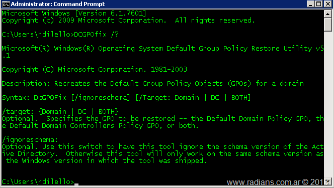 - DOMAIN: Especifica que la directiva predeterminada de dominio debe ser recreado.
