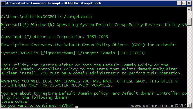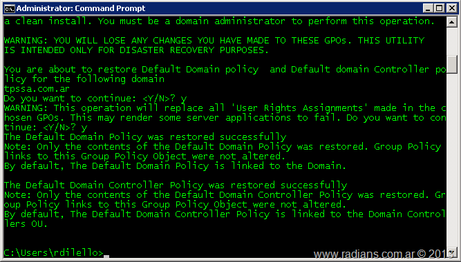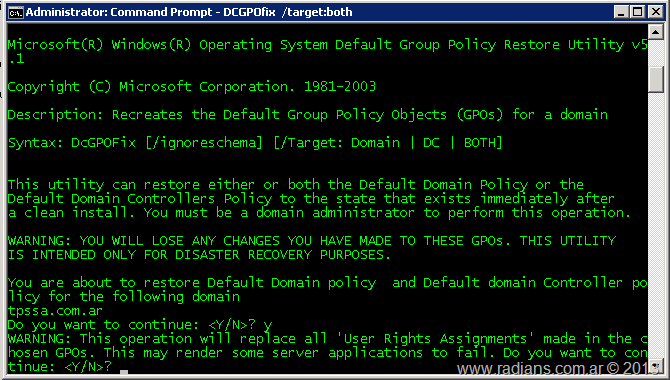 - BOTH: Especifica que la directiva de dominio predeterminada y la directiva de dominio predeterminada de controladores debe ser recreado.