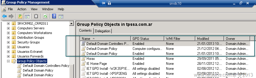 Si verificamos en la GPMC vemos que renombro nuestra política llamada obsoleta por su nombre default, y en consecuencia tenemos dos políticas llamadas Default Domain Policy.