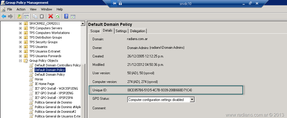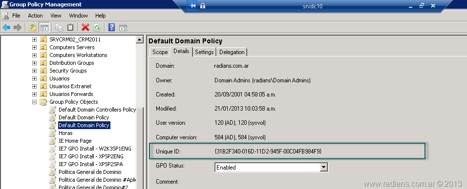 Ahora debemos verificar si esto es lo que nos esta pasando, para ello verificaremos el GUID de la GPO: