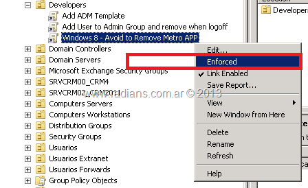 Es importante entender que funciona la herencia de GPO con LSDOU (local, sitio, dominio, unidad organizativa). Una vez que configuramos “No override” en un GPO, este concepto de precedencia es negado. Entonces el Enforced establece que el GPO en cuestión no puede ser reemplazado por cualquier otro GPO.