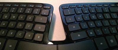 El descanso para la palma está acojinado y el teclado tiene forma de ‘domo’, como se muestra a continuación, para reducir movimientos de la muñeca. Como dato curioso, el nombre clave interno para este teclado era “Mantarraya” porque, como pueden ver, parece uno de estos animales. También permite ángulos inversos para provocar una posición derecha y neutral de la muñeca. Todos estos ajustes a un teclado tradicional colocan a su cuerpo en la mejor posición posible para un mayor confort y ergonomía.