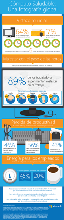 Aquí les presentamos la infografía con algunos datos y hechos interesantes referentes a la encuesta de Cómputo Saludable que realizó Microsoft.
