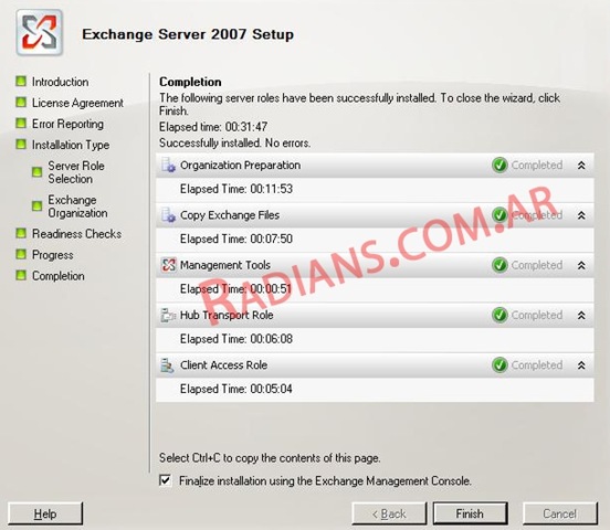 Bueno este es el procedimiento para una implementacion sencilla de estos roles de Exchange, el motivo de esto es mostrar de manera simplificada y sencilla como es el procedimiento. En la proxima nota veremos el final de una implementacion de Exchange 2007 en cluster, recordemos que lo unico que nos esta faltando es la instalacion del Mailbox Role sobre nuestros dos nodos del cluster, tanto en el nodo activo como en el pasivo.