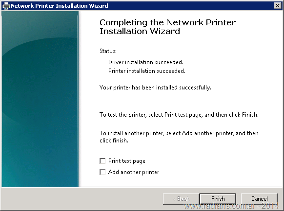 Podemos observar que la impresora se instalo correctamente, hacemos clic en Finish