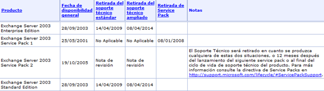Quería pasarles la información acerca de los tiempos que quedan de soporte para el Exchange Server 2003, como para ir planificando la migración y que no nos agarre a ultimo momento como paso (en muchos casos por lo menos) con NT.