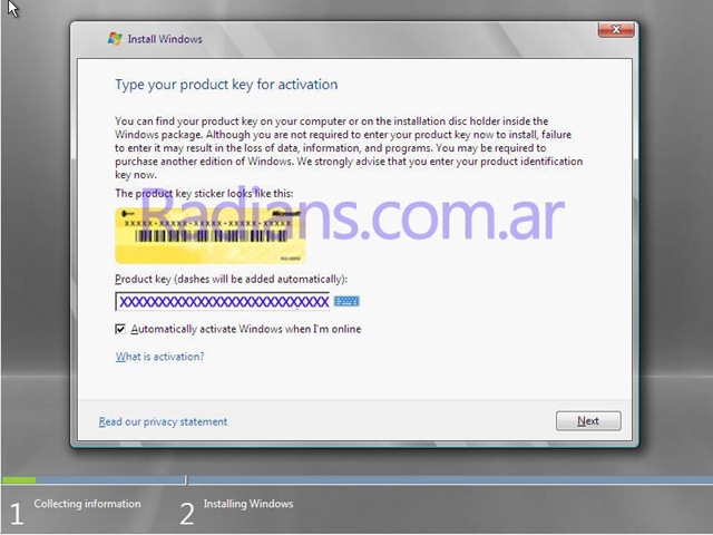 Ingresamos el numero de serie y hacemos un clic en Next.