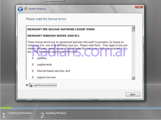 Ahora aceptamos la licencia y hacemos un clic en Next.
