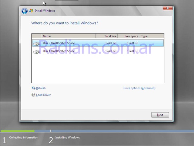 Seleccionamos el disco donde deseamos implementar nuestro servidor.