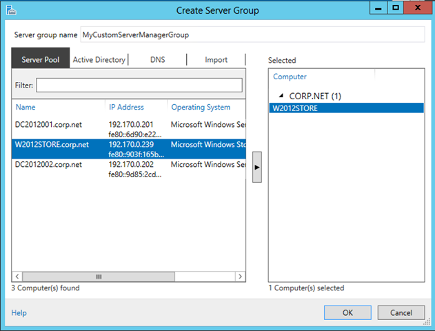 También puede añadir algunos grupos personalizados con el script New-ServerManagerGroup.ps1. Se crea un número aleatorio y lo utiliza como el ID de grupo necesario.