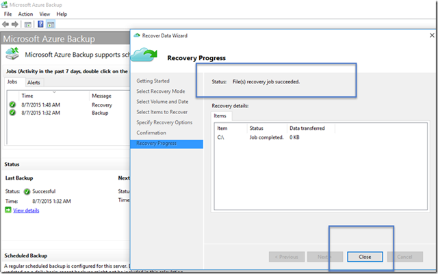 Con esto concluye "Copia de seguridad de los archivos y carpetas con Microsoft Azure servicios de recuperación de copia de seguridad Vault" para clientes de Windows, servidores Windows y System Center Data Protection Manager.