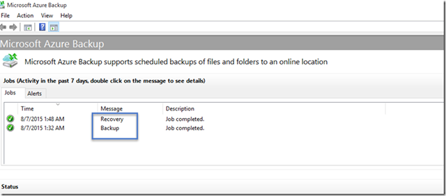 Una vez completado el seed inicial, en la vista de los JOBS en la consola de Azure Backup, nos muestra el estado.
