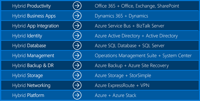 Mark Jewett, senior director de marketing del producto, hizo hincapié en el papel de servidor de 2016 en la estrategia híbrida de Microsoft cuando hablo de esta versión, dijo: "Nube híbrida no es sólo acerca de estar conectados – se trata de ser coherente/consistente". La compañía considera que Windows Server 2016 como un único producto en su estrategia híbrida en general, que también incluye la Oficina 365 y sus aplicaciones de productividad de escritorio, Dynamics 365 y su equivalente de escritorio, así como el servicio de SQL Server y base de datos SQL de Azure.