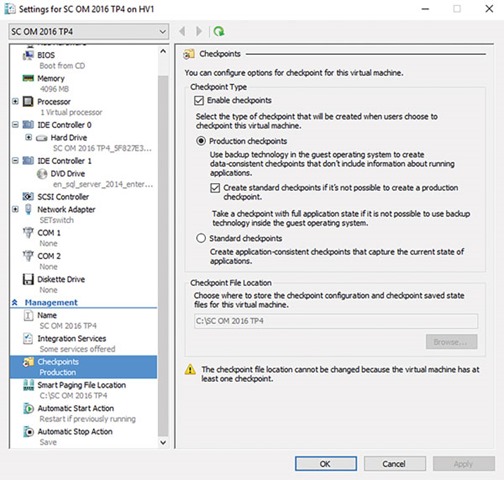 Esta nueva plataforma también desbloquea un nuevo tipo de instantánea de VM llamada Production Checkpoints. A diferencia de los puntos de verificación en Windows Server 2012 R2 y anteriores, estos utilizan VSS dentro de la máquina virtual, lo que lleva a dos mejoras. En primer lugar, la VM es consciente de que está siendo respaldada y potencialmente restaurada (siempre arranca, en lugar de ser restaurada a un estado en ejecución). En segundo lugar, elimina los riesgos de corrupción de bases de datos distribuidas (Active Directory, DAG de Exchange, etc.), lo que hace que estos puntos de control sean mucho más seguros (ver Figura 3).