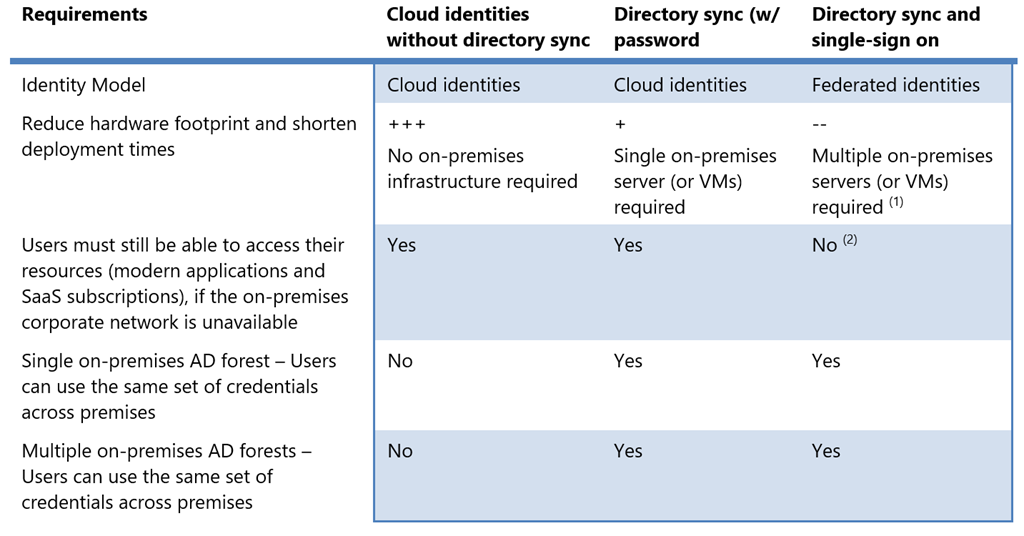 De esta manera, muchos clientes empresariales desean extender su infraestructura de identidad local para sincronizar perfectamente las identidades locales existentes con la nube y así establecer una plataforma de identidad corporativa híbrida. Este enfoque (también soportado por Azure AD) es más sofisticado.