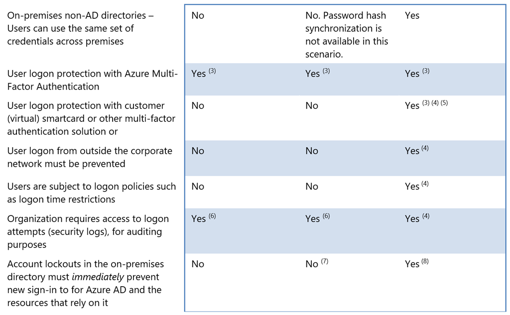 Azure AD soporta los siguientes tres escenarios de integración de directorios: