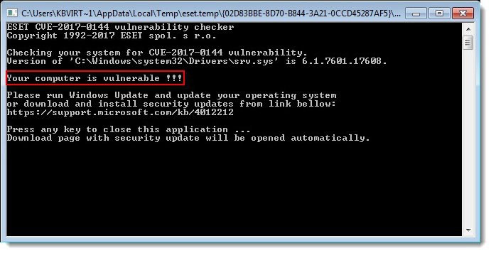 ESET ha lanzado una herramienta gratuita para ayudarle a determinar si su equipo con sistema operativo Windows posea las últimas actualizaciones de seguridad que resuelven la vulnerabilidad EternalBlue.