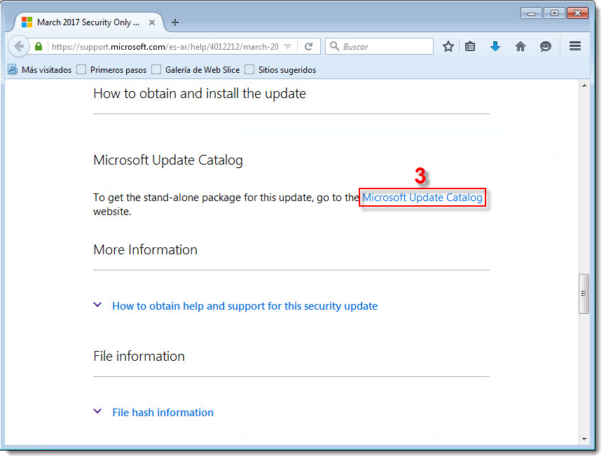Presione cualquier tecla para abrir la página de Microsoft Windows update. Haga clic en Microsoft Update Catalog dentro del apartado "Method 2: Microsoft update Catalog section".