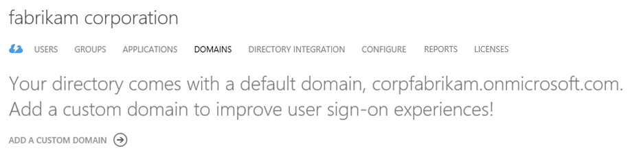 Después de inscribirse en Azure AD (o para un servicio de Microsoft como Office 365, Dynamics CRM Online y otros), el único dominio asociado con nuestra cuenta de suscripción y creado con el directorio tennant, es el dominio