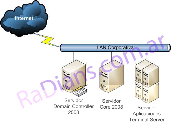 Será todo realizado con Windows Server 2008 en su version Enterprise, en nuestro dominio tendremos un DC, un servidor Core y por el momento un servidor de aplicaciones con el rol de Terminal Server.