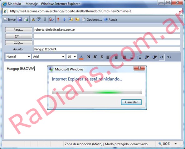 Un problema común es que haga un hangup el Internet Explorer y se reinicie. Como podemos ver en Vista y en XP.