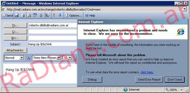 Ayer escribí una parte de como hacer el troubleshooting de OWA con IE7 (Problemas con OWA sobre Windows Vista e IE 7 {Troubleshooting Parte 2}) que precedía a la primera parte (Problemas con OWA sobre Windows Vista e IE 7), por eso quería escribir este ultimo apartado.