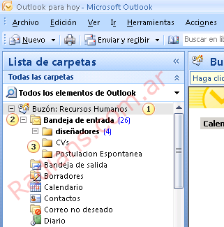 Para compartir una carpeta que no está directamente debajo de Buzón – nombre de usuario, al igual que la bandeja de entrada, contactos, calendario, notas, carpetas o Diario, debemos repetir el mismo procedimiento en cada una de las carpetas que es mayor en la carpeta del árbol.
