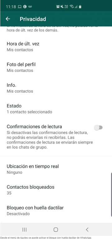 Otra cuestión para tener en cuenta para evitar que cualquiera que tenga tu celular pueda acceder a tu WhatsApp es configurar el bloqueo con pantalla dactilar. Para eso tenés que ir hasta Ajustes/Cuenta/Privacidad y activar la opción “bloqueo con huella dactilar”.