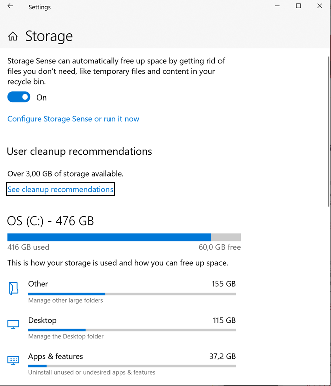 Mejoras en el sensor de almacenamiento para limpiar Windows