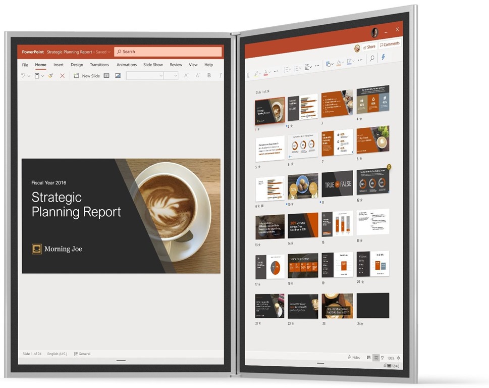 Al integrar Windows 10X en un PC de doble pantalla, los usuarios pueden realizar sus tareas sobre la marcha de forma más rápida que nunca y así aprovechar mejor su tiempo. Se pueden tomar notas en una pantalla mientras se revisa la propuesta completa del proyecto sobre la otra y desde cualquier lugar; sentarse en una mesa para escribir un correo electrónico en un teclado de hardware mientras espera para almorzar; ver un vídeo, navegar por internet o leer un libro.