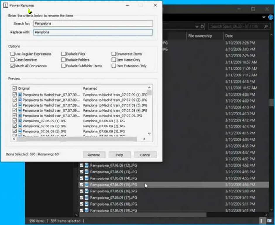 PowerRename es una extensión para Windows que se integra en el menú contextual y facilita el renombrado masivo de archivos desde el Explorador de Windows empleando caracteres, símbolos o expresiones regulares. Además, cuenta con vista previa para ver el resultado en tiempo real.